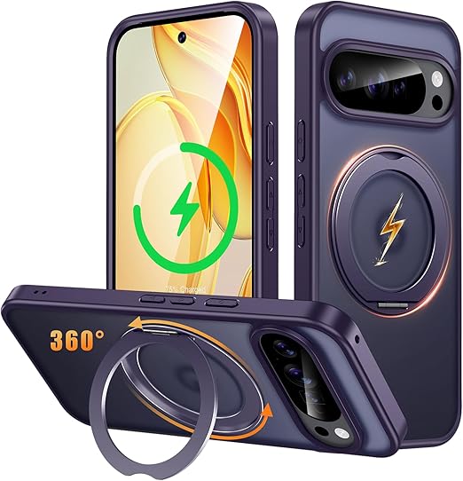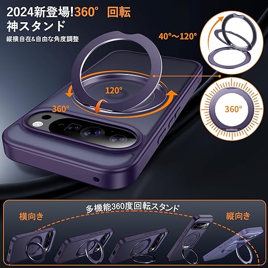 Google Pixel 10 Pro XL 用 ケース Magsafe対応 ワイヤレス充電 360°回転スタンド 縦横両対応 Gunwon スマホケース グーグル ピクセル 10 プロ XL 米軍規格 耐衝撃 半透明 マット感 マグセーフ 防指紋 リング マグネット搭載 ぐーくるぴくせる10 ProXL カバー「パープル」 a