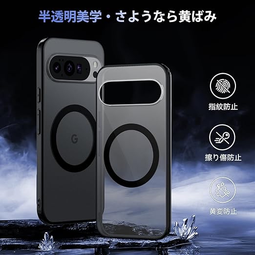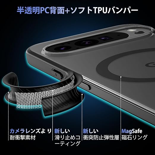 【MagSafe対応・指紋ゼロ】Google Pixel 10 Pro XL 用 ケース マグネット搭載 [ ストラップホール付き] [ソフトシリカゲルバンパー] 半透明 米軍MIL規格 耐衝撃 ワイヤレス充電対応 黄変防止 指紋防止 マグセーフ対応 スマホケース ピクセル10 Pro XL カバー「ブラック」 a