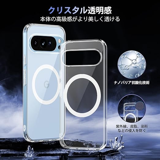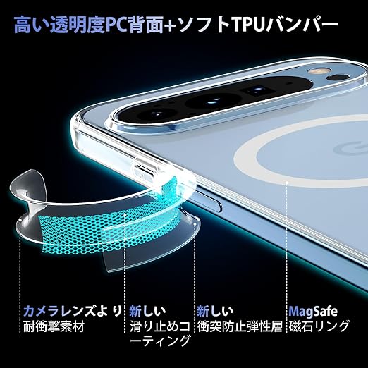 【MagSafe対応・全身透明】Google Pixel 10 Pro XL 用 ケース マグネット搭載 [ ストラップホール付き] [ソフトシリカゲルバンパー] 米軍MIL規格 耐衝撃 ワイヤレス充電対応 黄変防止 指紋防止 マグセーフ対応 スマホケース ピクセル10 Pro XL カバー「クリア」 a