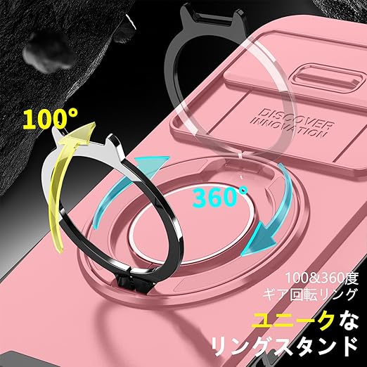 Google Pixel 10 Pro XL 用 ケース Magnetic対応 スタンド付き リング付き 耐衝撃 レンズ保護 スライドカメラカバー TPU+PC 軽量 滑り止め 落下保護 スタンド機能 車載ホルダー対応 ピクセル 10 プロ XL 携帯ケース ピンク R-LK-GP10PXL-05 a