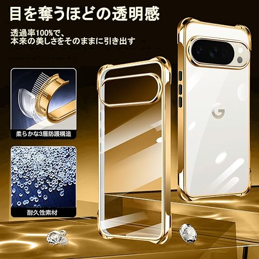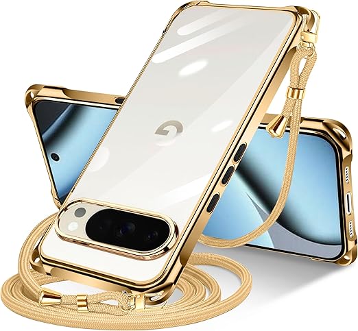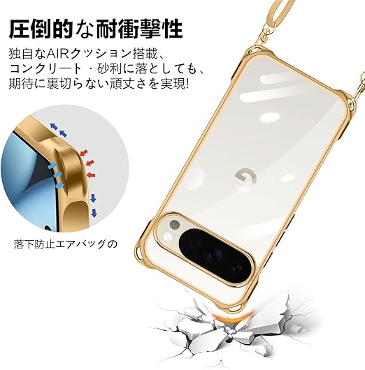 Google Pixel 10 Pro XL 用 ケース クリア ショルダー pixel 10pro xl 用 スマホケース ピクセル 10Pro XL カバー 肩掛け 斜めかけ 縄掛けケース 透明 薄型 軽量 TPU 紐付き 斜めがけ 織りストラップ付き ネックストラップ ショルダー 縦/横 2WAY 長さ調整可能 取り外し可能 落下防止 紛失防止 ワイヤレス充電対応 (ゴールド) a