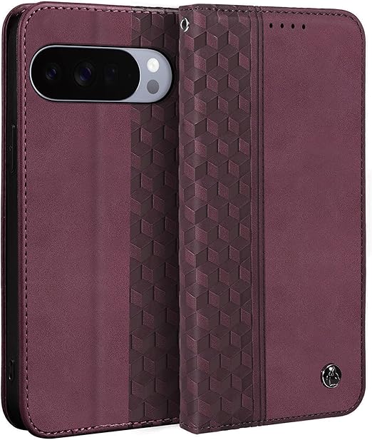 Gedurya Google Pixel 10 Pro XL ケース 手帳型 ひし形柄 グーグル ピクセル10pro xl ケース 手帳型 マグネット式 スタンド機能 携帯カバー カード収納 財布型 Google Pixel 10 Pro XL スマホケース 軽量 薄型 ケースカバー 全面保護 耐衝撃 6.8インチ対応 - レッド a