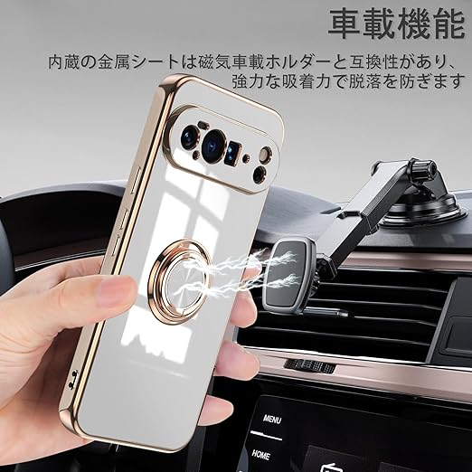[ZoRoll] Google Pixel 10 Pro XL 5G 対応 ケース リング付き、 Pixel 10 ProXL TPU シリコン メッキ加工カバー 磁気吸着 軽量 薄型 人気 耐衝撃 タンド機能付き 360回転 車載ホルダー対応 グーグル ピクセル10プロ XL 用 カバー (ホワイト) a