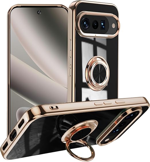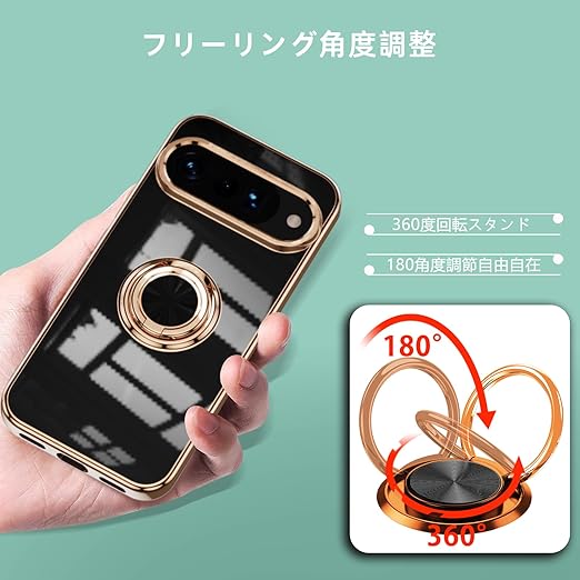 LuFiYa Google Pixel 10 Pro XL 5G 用 ケース リング付き カバー TPU素材 スタンド機 軽量 耐衝撃 薄い 擦り傷防止 落下防止 車載ホルダー 360°回転 スマホケース Google Pixel 10 Pro XL 5G 対応 (ブラック) a