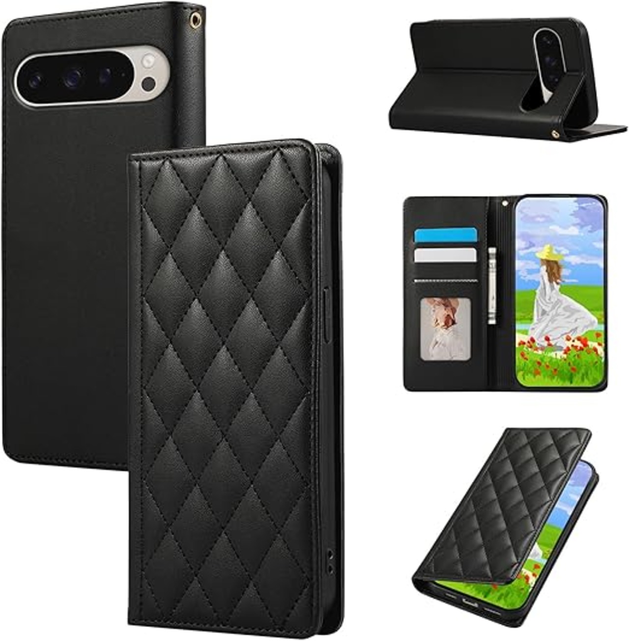 Gedurya Google Pixel 10 Pro XL ケース 手帳型 グーグル ピクセル10pro xl ケース 財布型 カード収納 RFIDブロッキング pixel10proxl 手帳型ケース マグネット式 ダイヤモンド グリッド シェイプ Google Pixel 10 Pro XL スマホケース スタンド機能 ピクセル10proxl 携帯カバー - ブラック a