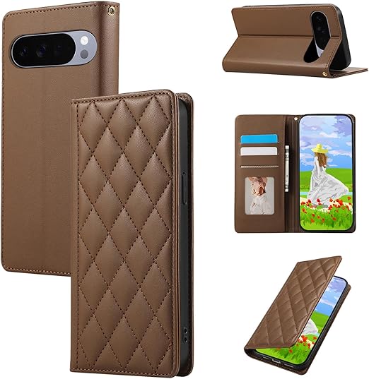 Gedurya Google Pixel 10 Pro XL ケース 手帳型 グーグル ピクセル10pro xl ケース 財布型 カード収納 RFIDブロッキング pixel10proxl 手帳型ケース マグネット式 ダイヤモンド グリッド シェイプ Google Pixel 10 Pro XL スマホケース スタンド機能 ピクセル10proxl 携帯カバー - ブラウン a