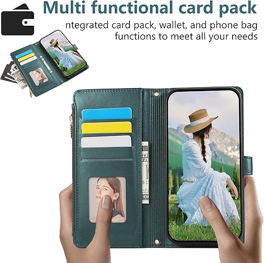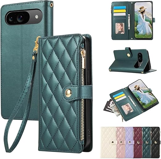 Rosbtib Google Pixel 10 Pro XL ケース 手帳型 pixel10 pro xl ケース 財布型 カバー ピクセル10プロ X L ケース 手帳型 おしゃれ ファスナー型 小銭入れ カード収納 携帯カバー グーグルピクセル10Pro xl スマホケース 刺繍 高級PUレザー 肌触り良い マグネット式 スタンド機能 全面保護(グリーン) a