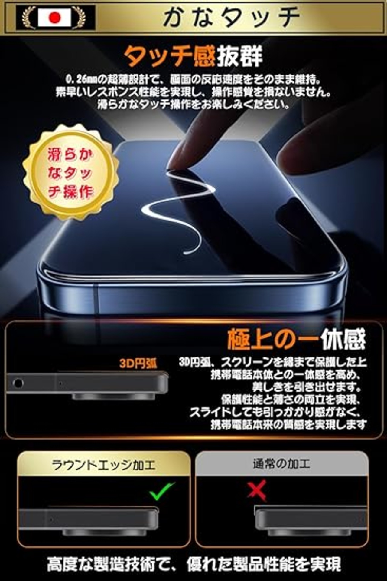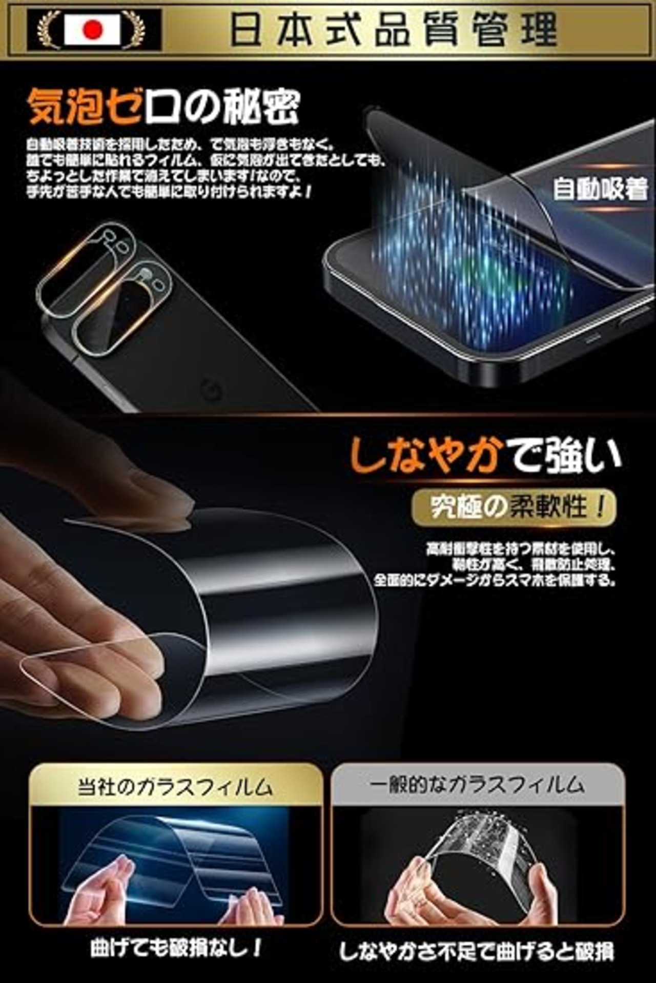 【日本旭硝子素材製・硬度9H超え】 Pixel 10 Pro XL 保護フィルム. (高品質 日本製素材,気泡の侵入を防ぎ、簡単に貼り付けることができます、 ガラスフィルムは非常に滑らかです。)業界 最 高レベルの9H硬度を有し、4.5時間以上の高温クエンチ処理を受け、スクリーンプロテクターは、通常のガラスよりも5倍高い125MPaの圧縮強度を持っています。 9H硬度を持つガラスにハードコーティングが施されることにより、フィルムは外部衝撃を吸収できる、画面へのダメージを最低限まで抑えました。あな
