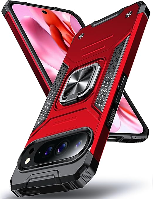 DASFOND Google Pixel 9 Pro XL ケース 360度回転メタルリングキックスタンド付き 米軍MIL 耐衝撃 強化PCハードバック 傷つけ防止 スマホケース グーグルピクセル9プロXL カバー 6.8 インチ レッド a