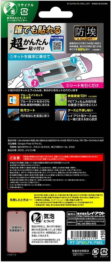 レイ・アウト Google Pixel 9 Pro XL ガラスフィルム ブルーライトカット GooglePixel 9ProXL グーグルピクセル フィルム ガラス 貼り付けキット付 簡単 失敗しない 保護 RT-GP9XLFK/FMG a