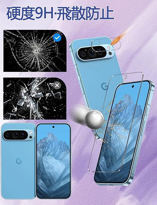 【超お得な2+2枚セット・ご注文前にお読みください・対応機種】グーグルピクセル9Pro XL 型 に適応しています! Google Pixel 9 Pro XL 2個の強化ガラススクリーン保護フィルムと Google Pixel 9 Pro XL 2個のレンズフィルムの組み合わせで、万能の保護を提供します。