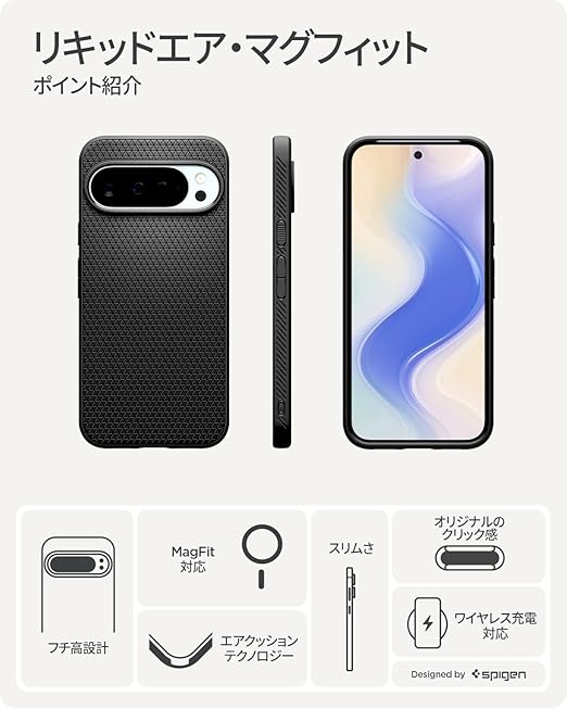 Spigen Pixel 10 Pro XL ケース Magsafe対応 マット仕上げ TPU 薄型 指紋防止 バンパー 耐衝撃 米軍MIL規格 リキッドエア・マグフィット ACS09718 (マット・ブラック) a