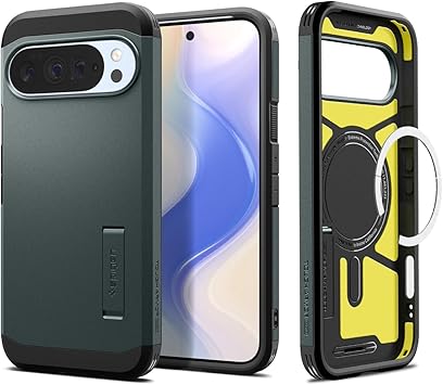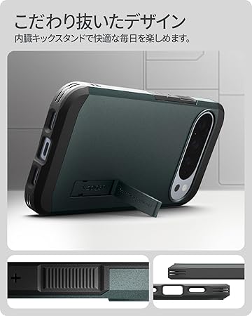 Spigen Pixel 10 Pro XL ケース 耐衝撃 MagSafe対応 スタンド付き マット 三重構造 米軍MIL規格 タフアーマーAI ・マグフィット ACS09730 (アビス・グリーン) a