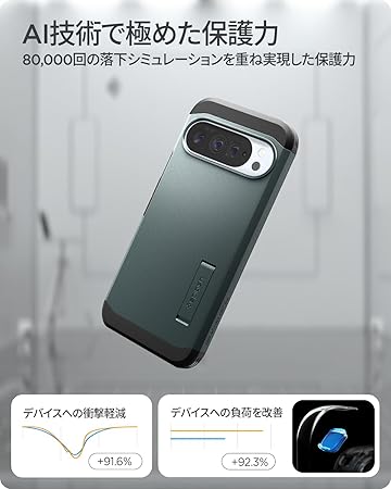 【米軍MIL規格取得・AI技術で極めた保護能力】最先端のAI技術を活用し、デバイスを最も効率的かつ徹底的に保護できる構造を計算しました。今まで築き上げてきたSpigenの技術とAIの計算で生み出した、スマホケースの最適解を直接ご経験く