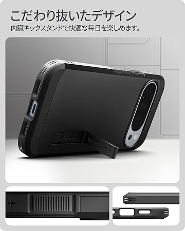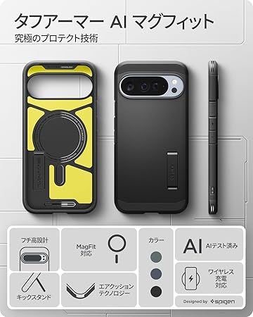 Spigen Pixel 10 Pro XL ケース 耐衝撃 MagSafe対応 スタンド付き マット 三重構造 米軍MIL規格 タフアーマーAI ・マグフィット ACS09728 (ブラック) a