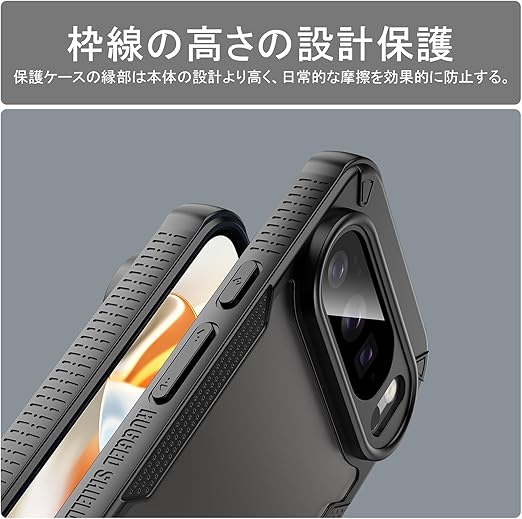 高品質素材&衝撃吸収:Google Pixel 10 Pro保護ケースの本体部分には高品質PC素材を採用し、肌触りも快適です。フレームはソフトなTPU素材を採用し、取り付けが容易です。本机より高い保護ケースのレンズとスクリーン、および保護ケースの四角な微気?の設計はすべて効果的に日常の擦れや不慮の落下を防ぎます。