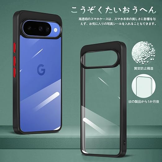 Pixel 10 / 10 Pro ケース クリア ピクセル 10 / ピクセル 10pro カバー 耐衝撃 透明 PC + TPU pixel 10 / pixel 10 pro スマホケース 薄型 軽量 人気 ワイヤレス充電対応 ストラップホール付き (ブラック) a