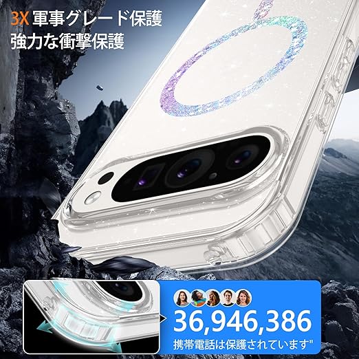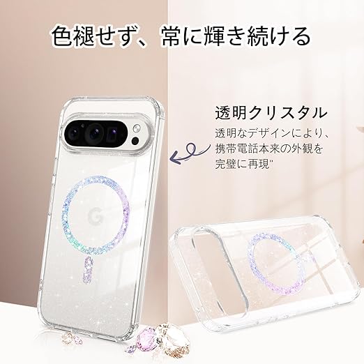 【2025新登場】YINLAI Google Pixel 10 Pro XL 専用 ケース カバー クリア | 耐衝撃 マグセーフ対応 マグネット式 | ワイヤレス充電 完全対応 & 米軍MIL規格 | 黄ばみ防止 美しさ 長持ち キラキラ かわいい デザイン| 軽量 薄型 スマホケース 女性用 a
