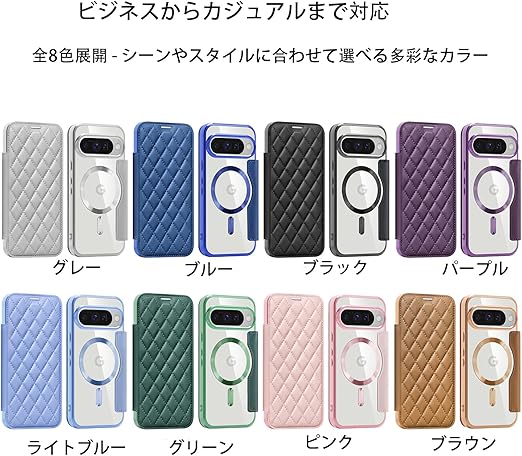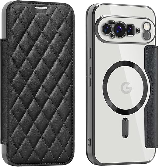 【対応機種】Google Pixel 10 Pro XL 専用フリップフォンケース。快適な手触り、耐久性のある素材を使用しています。(前面はPUレザー+裏面は透明TPUで作られており、MagSafe対応の磁気リングが内蔵されています)