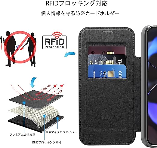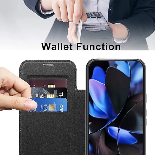 Luoiwei Google Pixel 10 Pro XL 用 ケース 手帳型 かわいい グーグルピクセル10Pro XL 用 携帯カバー背面 透明 Magsafe対応 おしゃれ 薄型 カード収納 PUレザー 内蔵マグネット 耐衝撃 財布型 カード収納 全面保護 落下保護 耐摩擦スマホケース(クリア,ブラック) a