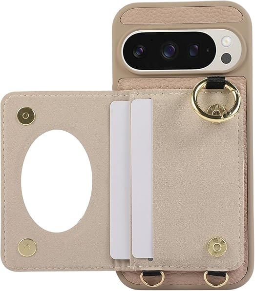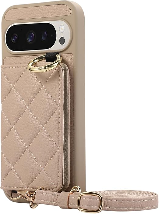 Succtopy Google Pixel 10 Pro XL ケース 手帳型 ショルダー スマホケース ピクセル10プロ XL ケース 手帳型 鏡付き 肩がけ 首掛け 斜め掛け ストラップ着脱可 財布付き リング付き 可愛いチェック柄 カバー マグネット内臓式 カード収納 携帯カバー(カーキ) a