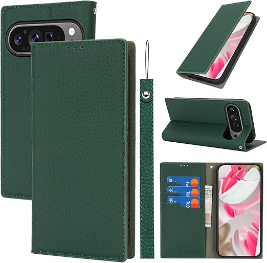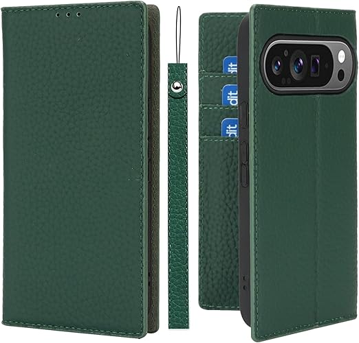 Pixel 10 ケース手帳型 for Google Pixel 10 Pro ケース Pelanty 牛革製品 本革レザー 財布型カバー カード収納 スタンド機能 内蔵マグネット 手作り柔らかい グーグル ピクセル10/10pro 携帯カバー ストラップ付 ヘッドフォンケーブル 耐衝撃 グリーン a