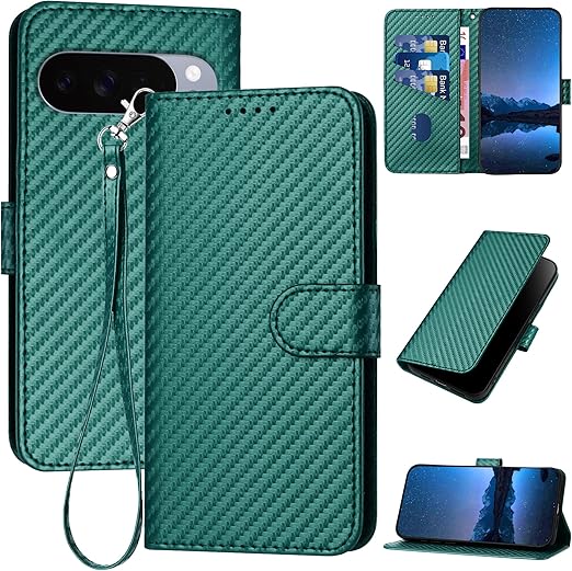 Gedurya Google Pixel 10 Pro XL ケース 手帳型 グーグル ピクセル10pro xl スマホケース 炭素繊維ブレイドスタイル 肌触り良い ピクセル10proxl ケース 携帯カバー マグネット開閉式 スタンド機能 軽量 薄型 Pixel10 Pro XL 手帳型ケース 指紋防止 人気 上質 携帯ケース 全面保護 財布型 便利 - グリーン a