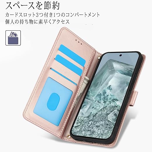 カード収納 &ストラップ付き:Pixel10 ケース 手帳型は収納力が抜群で、日常の支払いや名刺の持ち運びに便利な3つのカードスロットと財布ポケット、お気に入りの写真などを保存できる透明カードスロットを装備しています。 グーグルピクセル10 ケース 手帳型 ショルダーストラップの長さ