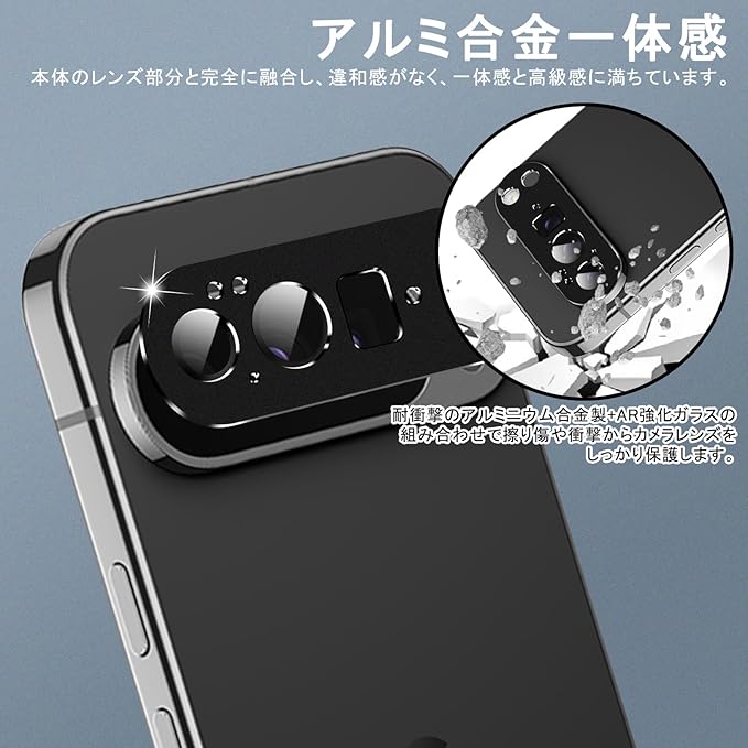 【アルミ合金一体感】本体のレンズ部分と完全に融合し、違和感がなく、一体感と高級感に満ちています。耐衝撃のアルミニウム合金製+AR強化ガラスの組み合わせで擦り傷や衝撃からpixel 10 proカメラレンズをしっかり保護します。