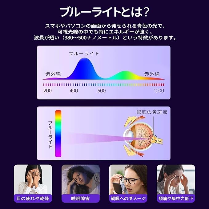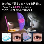 【ブルーライトカットで目も楽々!】ブルーライトを最99%カット! スマホやPCから発せられる有害なブルーライトを軽減し、目の疲れやダメージを軽減します。高透過率でクリアな視界! 画面の色味を損なわず、自然な視界を保ちます。