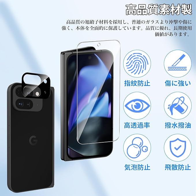 【2+2+2枚セット】Google Pixel 9 Pro Fold フィルム(4枚)+カメラフィルム(2枚) TPU素材+強化ガラス 傷つけ防止 9H硬度 耐衝撃 疎水疎油 指紋・汚れ防止 液晶画面 超高透過率 全面保護 自動修復 指紋認証対応 高感度タッチ 気泡なし 自動吸着 貼り付け簡単 a