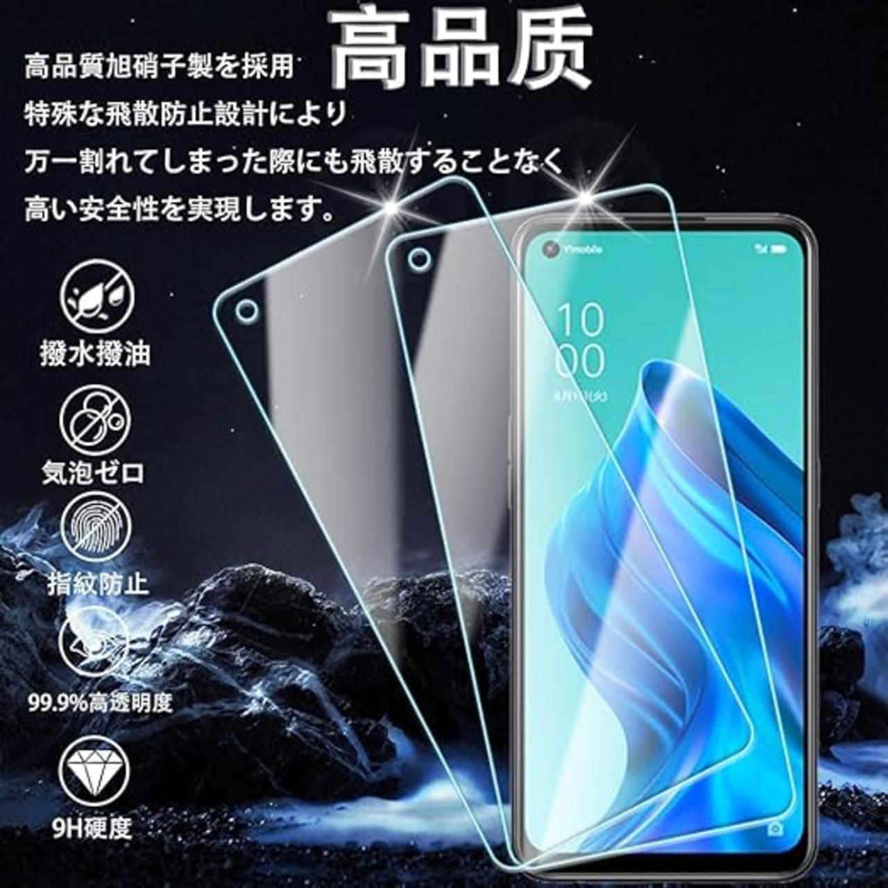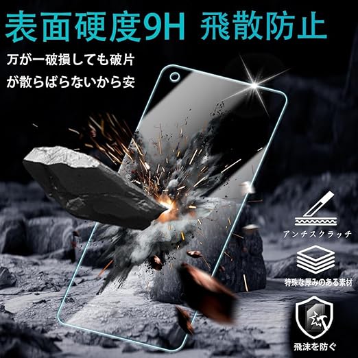 【飛散防止設計】高品質の日本硝子素材を採用します。飛散防止加工により、万が一ガラスが破損した場合も飛び散らず、破片は張り付いたままの状態になります。スクリーンを安 全に保護しながら破損による怪我を防ぎます。とっても安全!