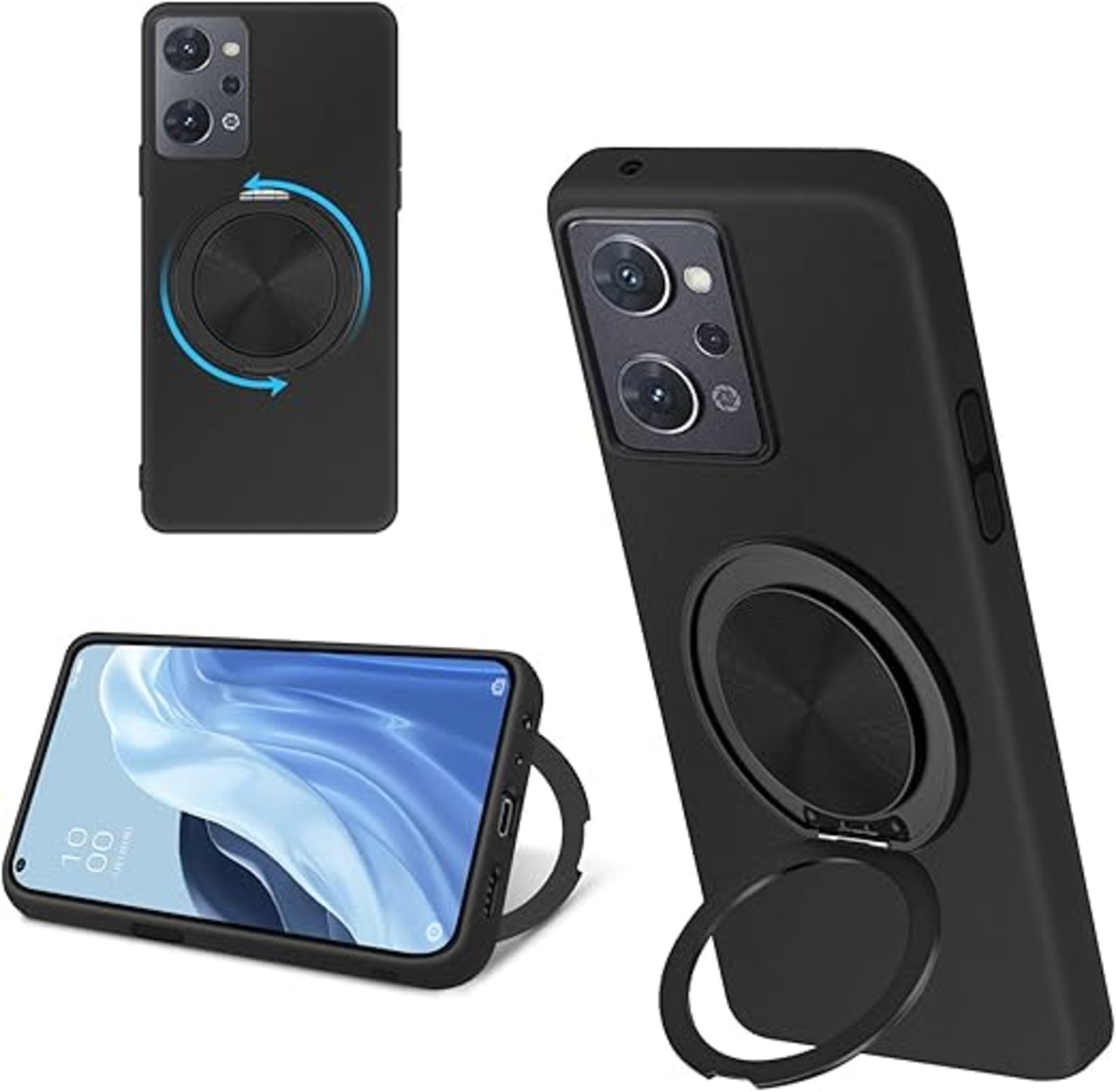 OPPO Reno9 A / Reno7 A ケース シリコン MagSafe対応 リング付き 360°回転スタンド 縦横両対応 アジャスタブルスタンド マット仕上げ 耐衝撃 スマホ ケース OPG04 CPH2353 CPH2523 カバー 衝撃吸収ポケット内蔵 TPU 薄型軽量 ストラップホール付き オッポ リノ7 a / リノ9 a 保護カバー a