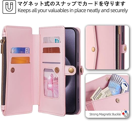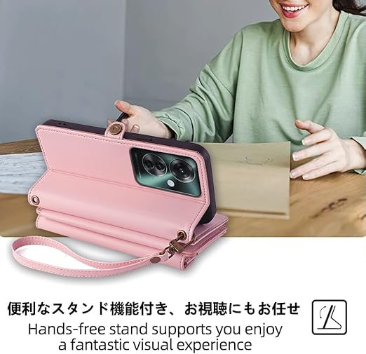 Oppo Reno11 A ケース 手帳型 通用 Reno11A ショルダーケース オッポ Reno 11A ストラップケース A401OP CPH2603 SIMフリー ワイモバイル 楽天モバイル 携帯カバー Reno 11 A 手帳ケース おっぽ oppo ネノ11A カバー 適用 case Cobeimisr ショルダー バッグ ストラップ 斜め掛け スマホケース カードケース ピンク a