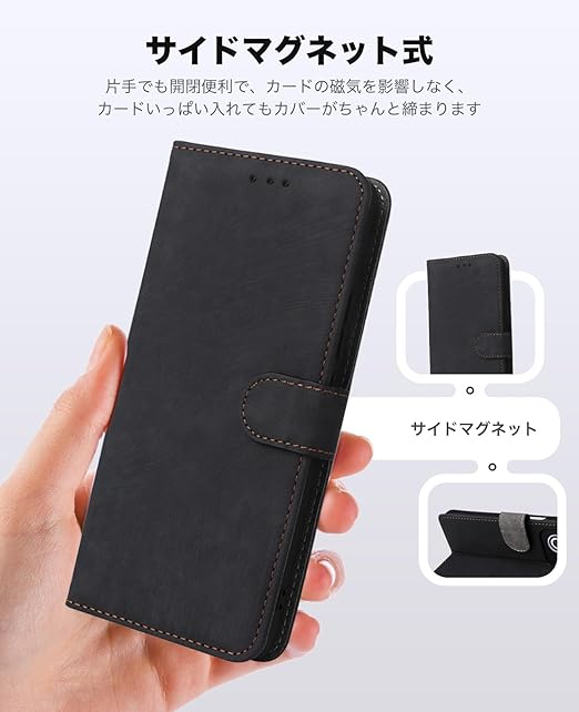 For OPPO A3 5G / OPPO A3 Pro 5G ケース 手帳型 スマホケース 手作り PUレザー 携帯カバー YANMONGI 財布型 ハンドストラップ付 軽量 薄型 耐衝撃 耐摩擦 全面保護 手触り良い 滑り落ちにくい 指紋防止 マグネッ式カード収納 スタンド機能 (ブラック) a