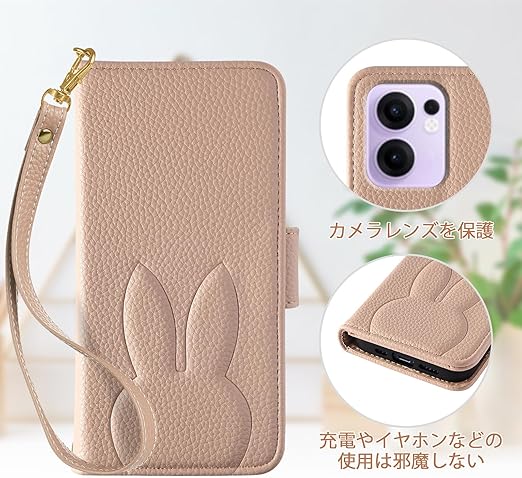 Reddylin 対応 OPPO Reno 13A ケース 手帳型 かわいいウサギ おしゃれ OPPO Reno13 A ケース 手帳型 スタンド機能 カード収納 オッポリノ13a 携帯ケース Reno 13F カバー 全面保護 衝撃吸収 耐久性 マグネット式 reno13a スマホケース 指紋防止 仕上がり ご家族やご友人へのプレゼントにも,アンズ色 a
