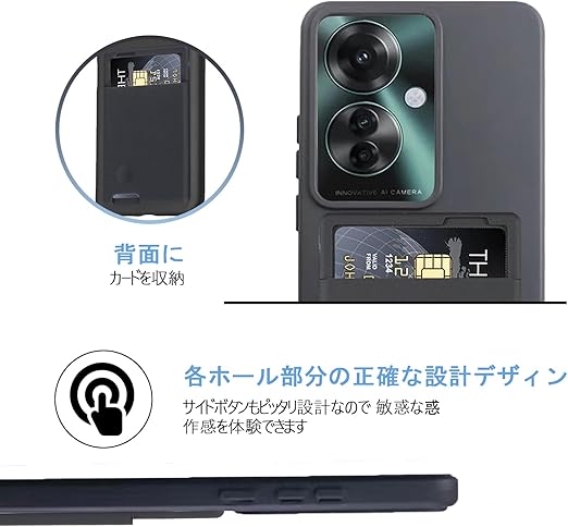 【 Agaiy 】OPPO RENO11 A /RENO11 F 5G 対応 ケース 背面カード収納 耐衝撃 薄型 軽量(ブラック) オッポ リノ11A TPUスマホケース 全面保護 超耐磨 マット質感 ストラップホール付き 携帯便利 Reno11a カバー 黒 a