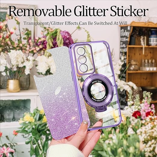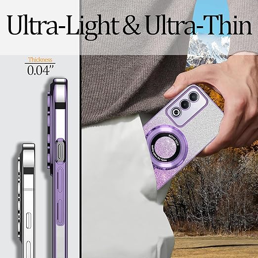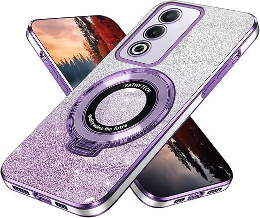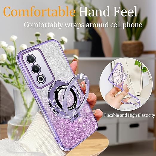 Wousunly ケース互換性がありますOPPO A3 5Gケースきらきら 薄型 軽量OPPO A3 5Gカバー リング360°回転車載ホル 2in1キラキラ全面保護 (ヴィオラ) a