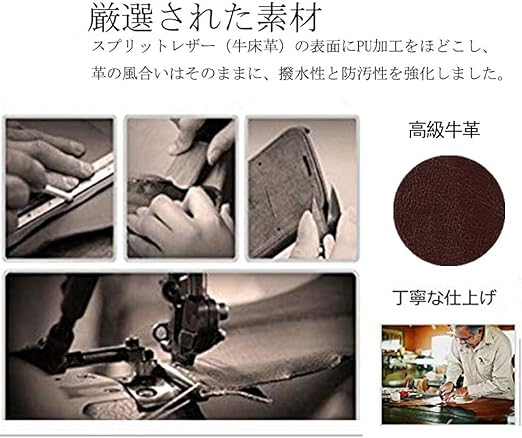 【純正レザー】耐久性に優れる本革を使っており、丈夫で高級感がありの商品です。ご注意:この商品に使う本革(牛革)が本革の第2層の床革系レザーというスプリット革(split cowhide)です。「革をつくる際は、皮を脱毛後に上層と下層に分けます。床革系のレザーは、その下層部分をつかって仕上げた革です。」予めご了承ください。。シンプルでシックなデザインで、場所問わず長くご愛用いただける手帳型です。丈夫で、摩