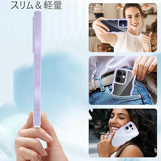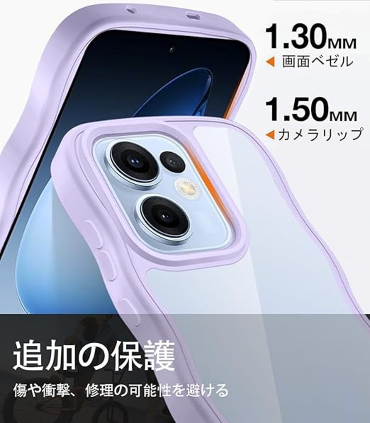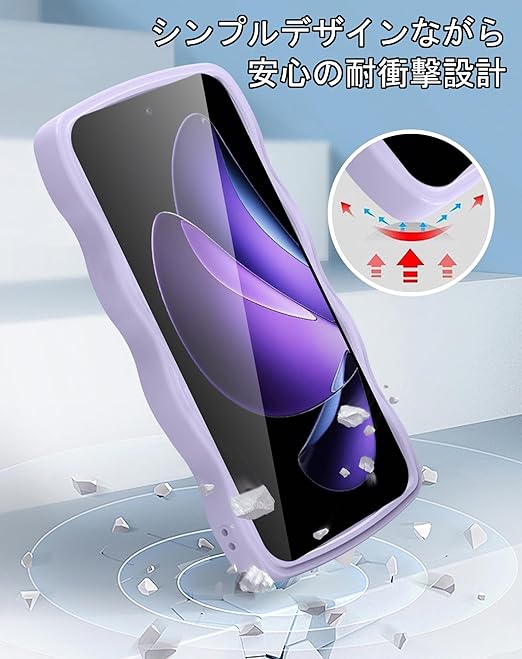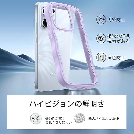 クリア OPPO Reno13 A ケース かわいい 波状フレーム うねうね 耐衝撃 オッポリノリノ13A スマホケース 滑り止め 人気 可愛い カバー 落下防止 ワイヤレス充電対応 (パープル) a