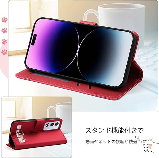 Qribo Oppo A3 5G / Oppo A3 Pro 5G ケース 手帳型 オツポ A3 5G ケース Oppo A3 5G ケース シンプルなのに可愛いデザイン エンボス加工猫柄 うれしい気持ち 6.67インチ対応 Oppo A3 5G スマホケース Oppo A3 5G 手帳型 ケース 薄型 オツポ A3 Pro ケース 防水 の耐久性 滑り防止 美しい 贈り物 友達 - レッド a