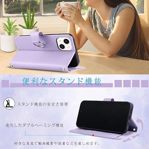 Vokpok 対応 OPPO Reno 13A ケース 手帳型 高級PUレザー おしゃれ オッポリノ13A 財布型ケース 強力マルチカード収納 手首ベルト、斜め肩ベルト両用 スタンド機能付き 耐衝撃耐摩擦 全面保護 OPPO Reno 13a スマホケース おしゃれ小香風 人気上品 オッポリノ13a ケース, パープル a