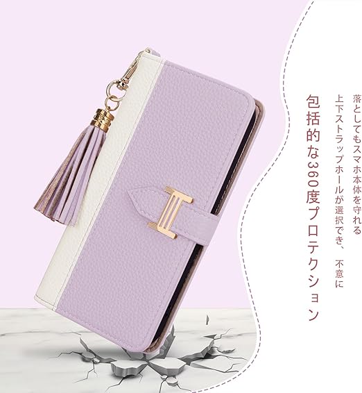 Xperia 1 VII ケース 手帳型 エクスペリア1 VII ケース 財布型 SO-51F/SOG15 カバー Xperia 1 VII カバー エクスペリア 1 7 スマホケース 2色パッチワークファッション携帯ケース マグネットクラスプ付き カード入れ収納 スタンド機能 高級PUレザー 全面保護(同色のペンダント付き) (ミスティパープル) a