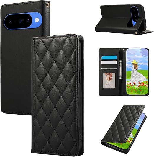 Gedurya Google Pixel 10 / 10 Pro ケース 手帳型 グーグル ピクセル10 ケース 財布型 カード収納 RFIDブロッキング Pixel10 手帳型ケース マグネット式 ダイヤモンド グリッド シェイプ Google Pixel 10 Pro スマホケース スタンド機能 ピクセル10pro 携帯カバー - ブラック a