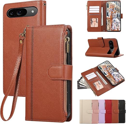 KW-LINK Google Pixel 10 ケース 手帳型 Pixel 10 Pro ケース 小銭入れ ファスナー型 グーグルピクセル10 ケースカバー ピクセル10プロ 携帯カバー コインポケット カード収納 財布型 Pixel10 カバー ピクセル10Pro 手帳型ケース スタンド機能 マグネット式 pixel 10 / 10 pro スマホケース ストラップ付 薄型 耐衝撃 - ブラウン a