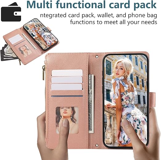 KW-LINK Google Pixel 10 ケース 手帳型 Pixel 10 Pro ケース 小銭入れ ファスナー型 グーグルピクセル10 ケースカバー ピクセル10プロ 携帯カバー コインポケット カード収納 財布型 Pixel10 カバー ピクセル10Pro 手帳型ケース スタンド機能 マグネット式 pixel10 / 10 pro スマホケース ストラップ付 耐衝撃 - ローズゴールド a