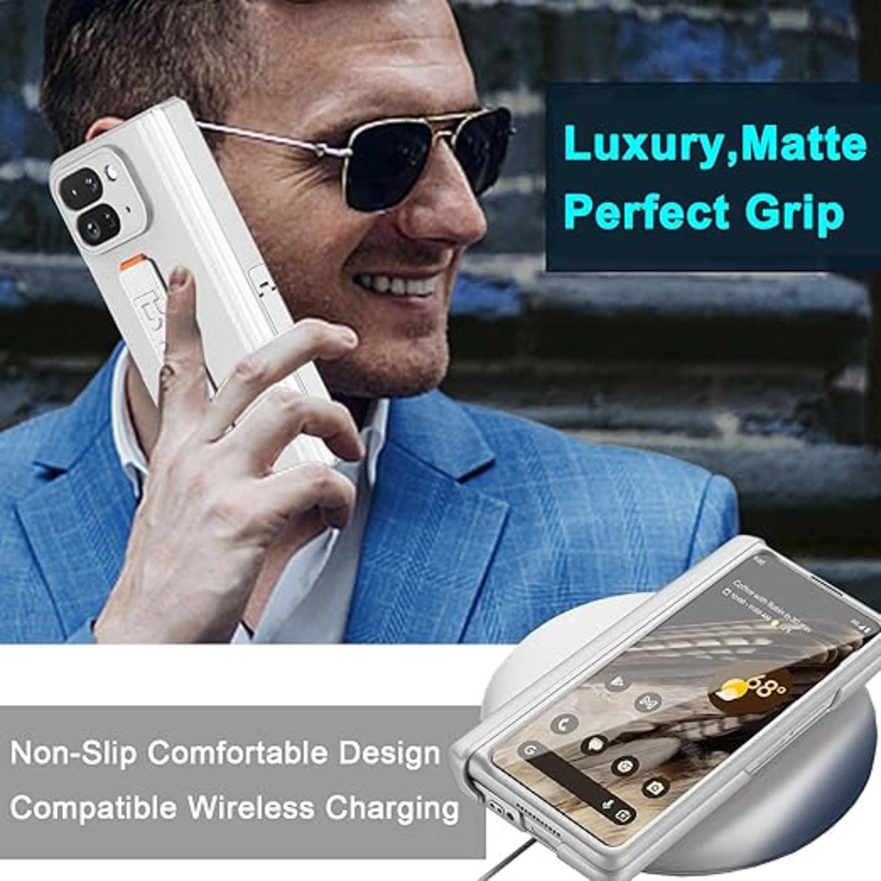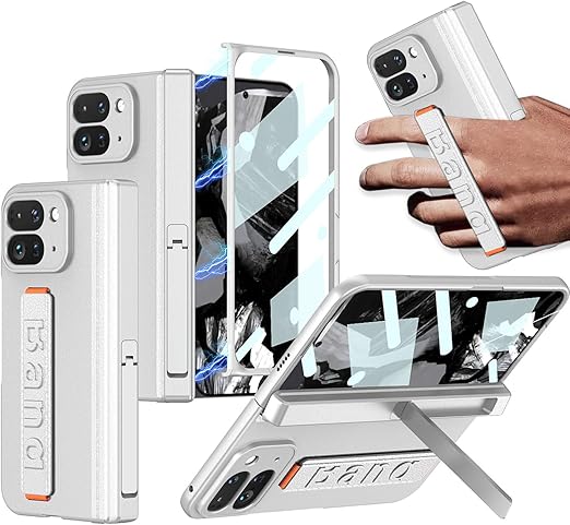NINKI適応 Google Pixel 9 Pro Fold ケース 格納式リストバンド ヒンジ保護 キックスタンド 折り畳み式 PC製品 スクリーンフィルム一体型 ワイヤレス充電対応 グーグル ピクセル 9プロ フォールド 5G スマホ 保護カバー アクセサリー (シルバー) a