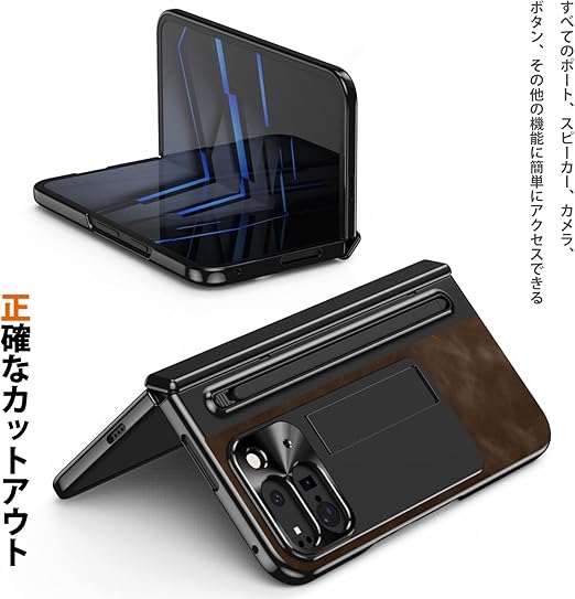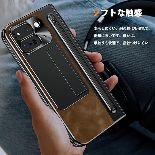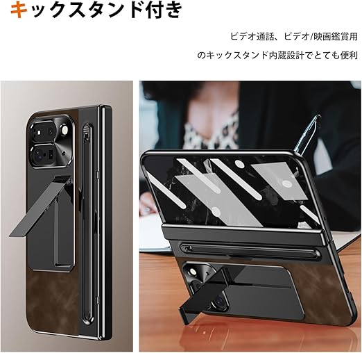 NINKI適応 Google Pixel 9 Pro Fold ケース タッチペン付き ペンスロット ヒンジ保護 キックスタンド内蔵 折り畳み式 PC+レザー製 スクリーンフィルム一体型 スクラッチ防止 グーグル ピクセル 9プロ フォールド カバー(ダークブラウン) a