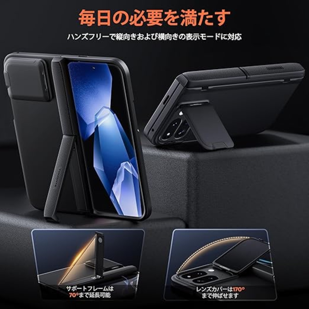 [オールインワン多機能デザイン】TONGATE Pixel 9 Pro Foldケースのデザインは、スタンド、マグネット、ヒンジ、カメラカバーなどを組み合わせており、いつでもどこでもスタンドの使用、スマホの充電、スマホの保護が可能です