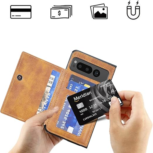 【Anrek】Google Pixel Fold docomo 用 ケース 手帳型 財布型 新型 防水 き 衝撃吸収 軽量 め 多機能 落下保護 手帳型 ケース(レトロブラウン)ピクセル フォールド 高級 PU革 磁石吸着 ポケッ 片手操作背面 IC カード 収納 横置き機能 ケースfold 薄い茶 a